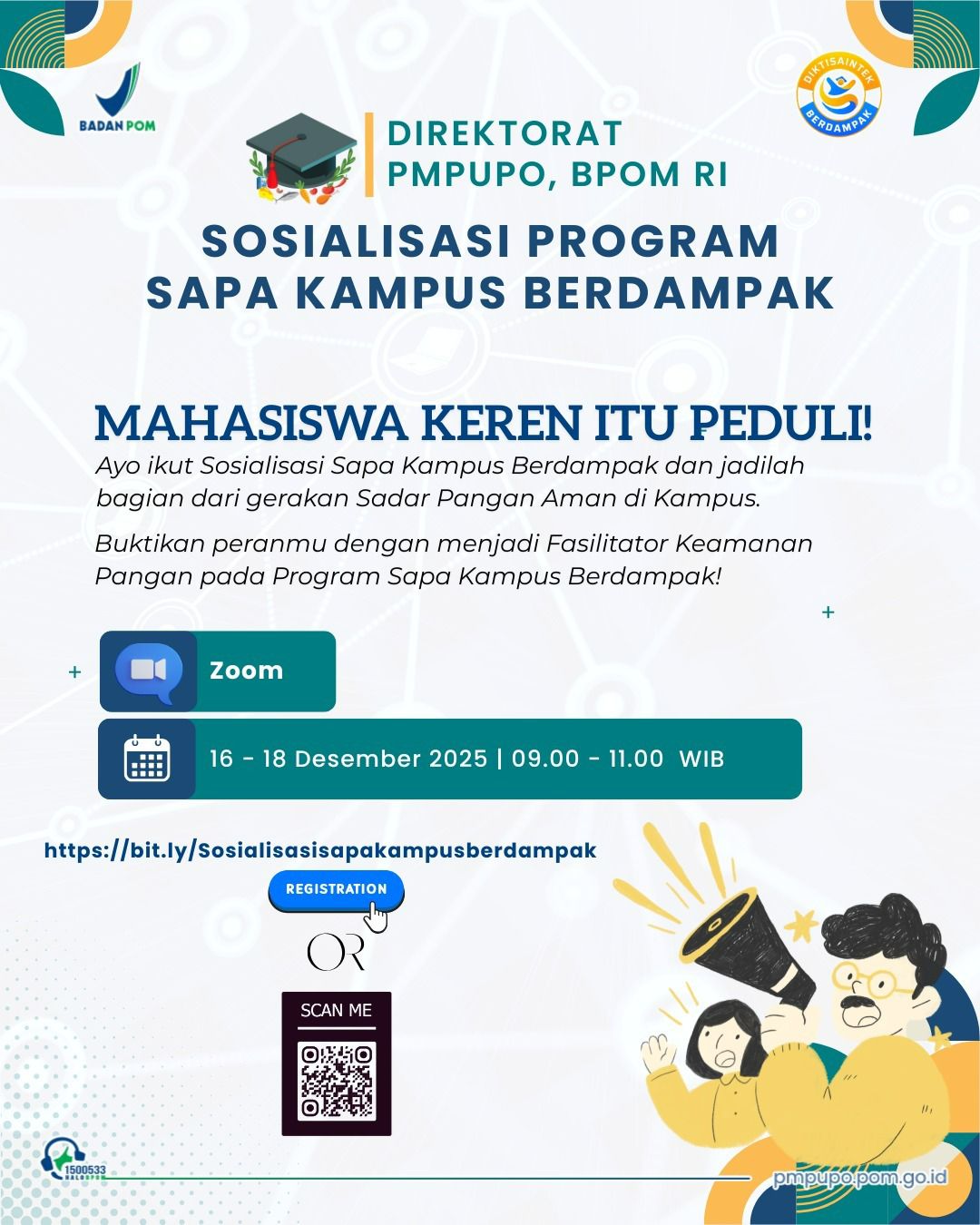 Call for Awesome Students! 📢🎓Awesome students aren't just those with high GPAs, but also those who CARE! Come on, show your concern for food safety on campus.The Directorate of PMPUPO BPOM RI invites the a