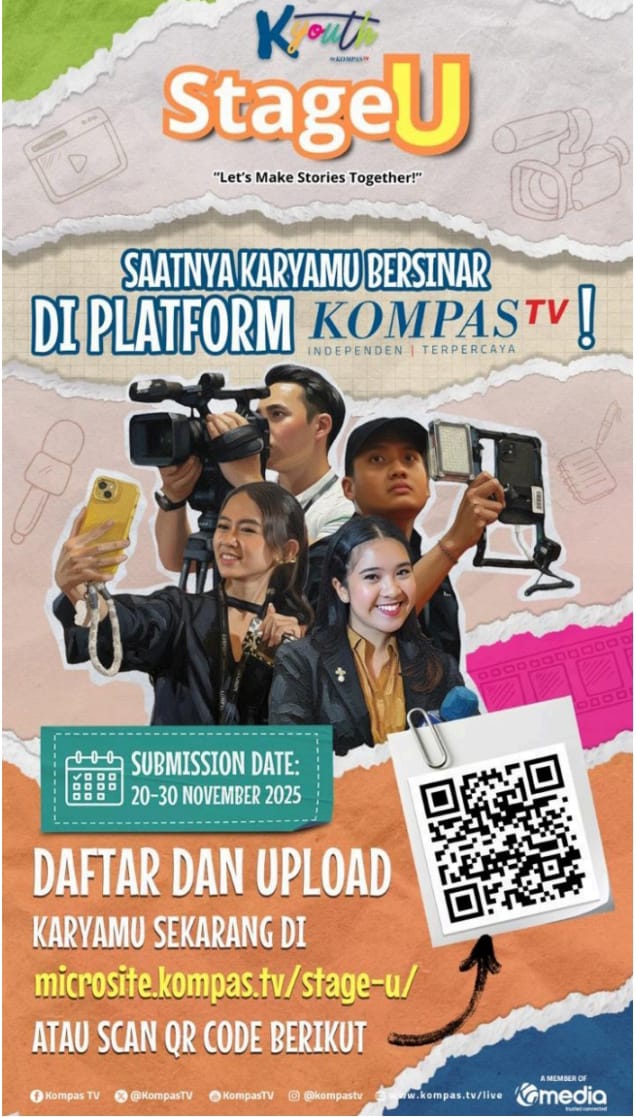 Undangan Perlombaan StageU KOMPASTVSaatnya Karyamu Bersinar di Platform KOMPASTV!Submission Date: 20-30 November 2025Daftar dan Upload Karyamu Sekarang di: